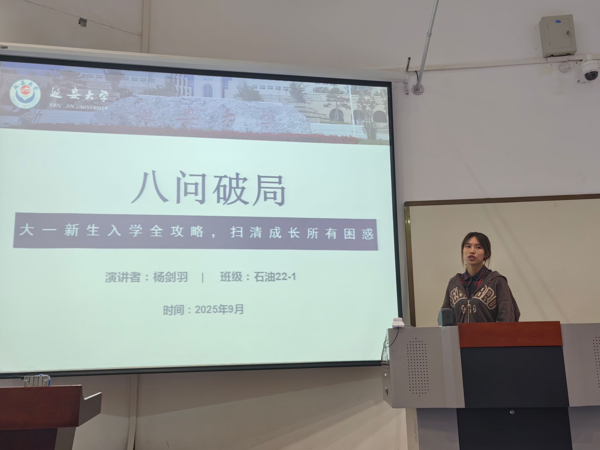 会议安排已推荐免试攻读中国石油大学(华东)硕士研究生的2022级石油工程专业学生杨剑羽为新生作学业规划交流报告。她结合自身经历,从学业规划、科研创新、社会实践等方面分享了成长经验,为新生提供了实用建议和发展思路。