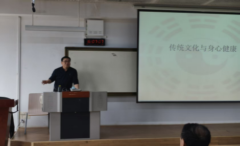 讲座伊始,牛保明对韩盟副教授表示热烈欢迎,并对韩教授个人履历进行介绍。韩盟以深厚的学术积淀和生动的语言,深刻阐释了中国传统文化中蕴含的丰富心理学智慧。他指出,以儒、释、道为代表的中国传统文化,构建了一套独特的关于“心性”修养与生命境界提升的体系。儒家强调“内省”“中庸”与“仁爱”,倡导通过道德修养实现内心的平和与人际的和谐;道家推崇“道法自然”“虚静恬淡”,引导人们顺应自然规律,化解执着带来的焦虑;佛家(禅宗)则注重“明心见性”“放下自在”,帮助人们洞悉烦恼根源,获得心灵的解脱。这些思想资源,为理解当代大学生的心理特点、疏导成长中的困惑,提供了极具启发性的视角和路径。