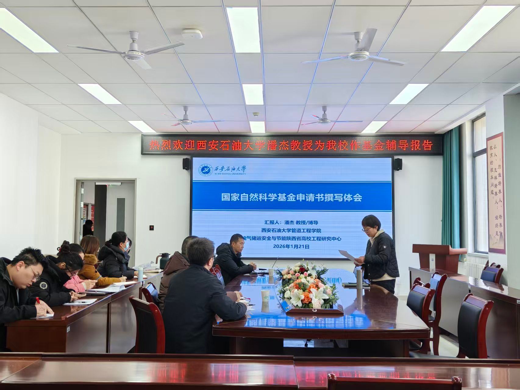 为进一步提升我校石油学院教师国家自然科学基金申报能力,规范申报书撰写流程,提高申报质量与成功率,1月21日下午,西安石油大学潘杰教授应邀莅临我校石油学院,在325会议室作了题为《国家自然科学基金申请书撰写体会》的专题基金辅导报告。石油学院40余名骨干教师齐聚现场,认真聆听、深入学习,报告会由学院院长张玉琦教授主持。